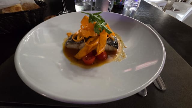- Trancio di pesce nobile in guazzetto e verdure croccanti