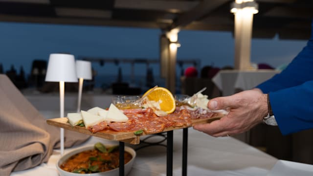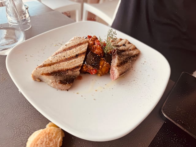 - Tonno, ricciola, salicornia, gambero rosso, scampi, ostriche, olio evo