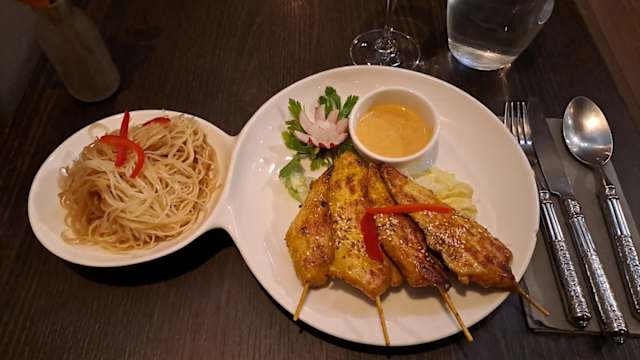 - Assortiments de nems au poulet, rouleaux de crevettes, samossas au boeuf & brochettes de poulet satay - sauces maisons à base de pruneaux et d’ananas