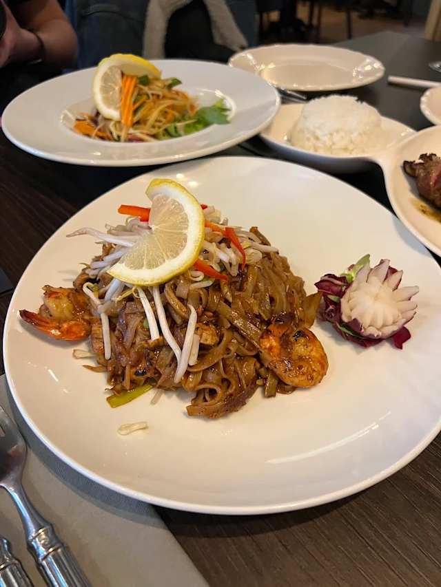 - Nouilles de riz sautées, sauce sucrée à base de tamarin et d'arachide