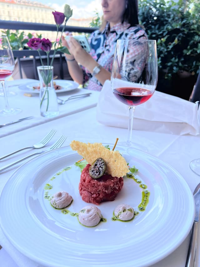 5/10The location was very nice but that is where it stopped. I will happily pay more than the price for a good quality meal. This was certainly overpriced food that was not up to standard. I had the worst beef steak tartare I have ever had (and I have had a fair few over the years). Literally a pile of raw beef just plonked on a plate. The carpaccio of fish was smoked fish so not carpaccio at all. The risotto was nice but had 4 small prawns for a prawn risotto main course. Really not worth it - avoid.