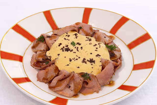 - Ravioli pasta filled with ox cheek, parmigiano reggiano fondue