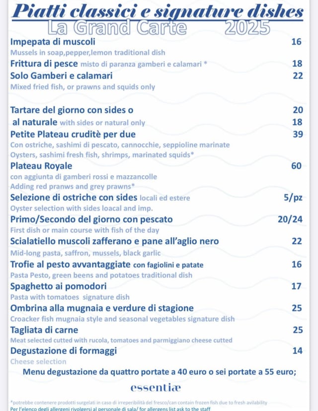 10/10Had an amazing evening at Essentiae in charming Tellaro! The menu was delicious and incredibly creative, every dish a delightful surprise. The staff was super friendly and upbeat, adding to the great vibe. Perfect spot for a romantic night out! Highly recommend!