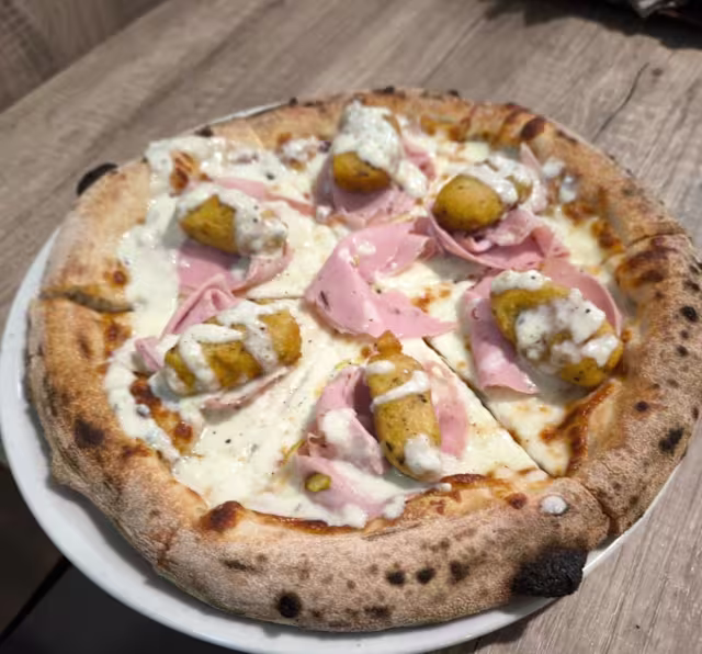 - Mozzarella fior di latte (caseificio dispenza), funghi porcini, salsiccia artigianale (macelleria siracusa), bacon