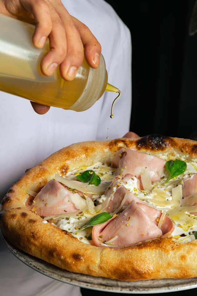 - Ricotta, éclats de pistache, mortadelle, crème fraiche, citron