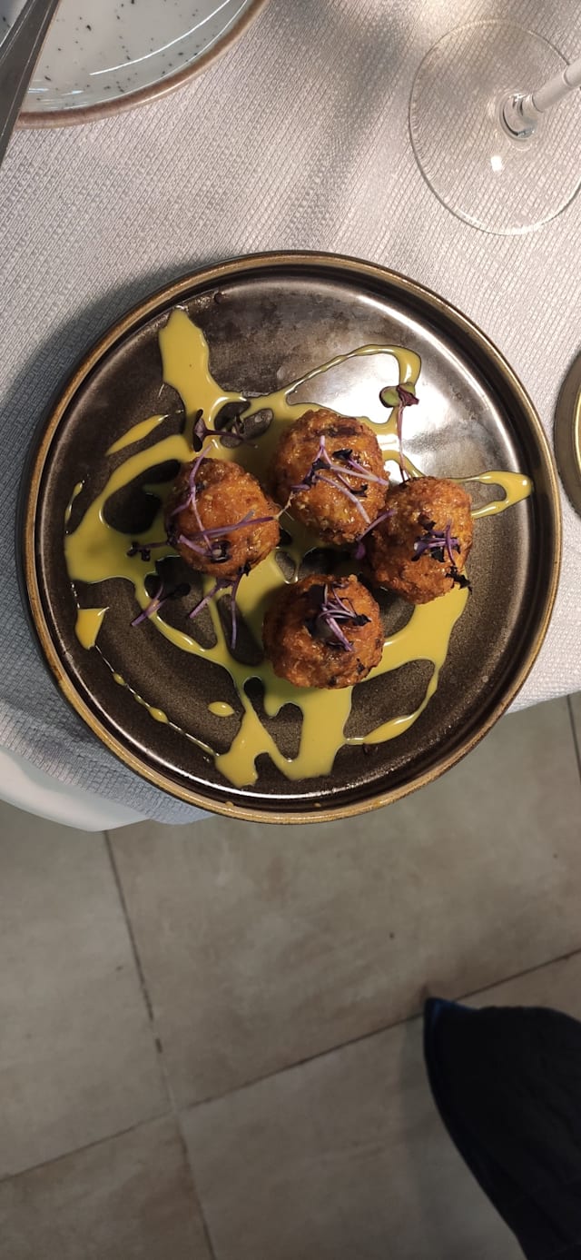 Polpettine di gamberetti su salsa di zabaione salata