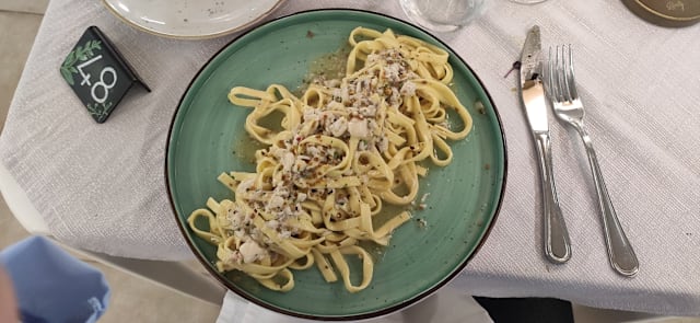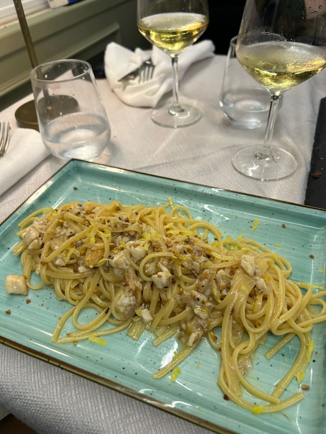 Fettuccine spigola, limone e pistacchio