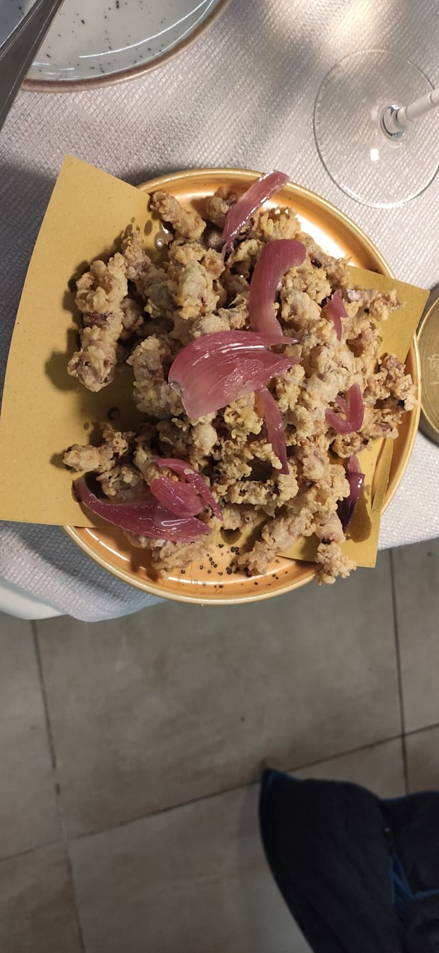 Fritto di moscardini con cipolla chutney