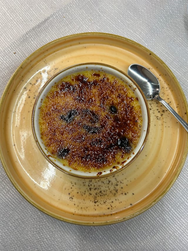 Creme brulè cioccolato bianco e mirtilli
