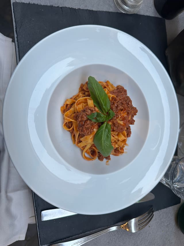 8/10The service was good overall, the restaurant's crowded atmosphere clearly impacted the level of individualized attention from the staff. Waiters efficiently took orders but did not seem to have the opportunity to offer recommendations or engage in understanding our preferences. The food had its highs and lows. The fettuccine with bolognese ragout was excellent and well-balanced; the accompanying parmigiano was unnecessary. My wife's steak was decent but lacked any distinguishing features. For dessert, the chocolate cake was enjoyable, though it did not deliver the anticipated intensity or flavor of a truly exceptional chocolate experience. Overall, the restaurant offers a pleasant, albeit busy, environment. However, it doesn't stand out as exceptional, especially given that prices are approximately 20% above average.