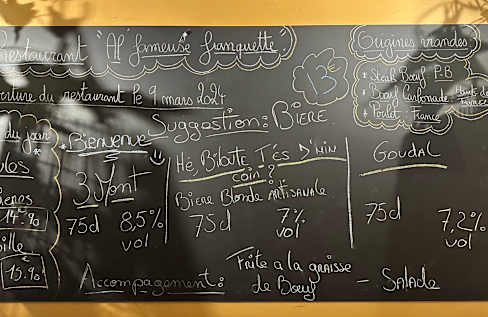 bonsoir, Tout d'abord merci bien d'être passé Dîner chez nous. Fort malheureusement je ne comprend pas votre commantaire. Vous êtes venus dîner chez nous le vendredi soir. Les vendredis soirs sont présents que trois personnes dans l'équipe. Deux en cuisine et une en salle. La personne en salle ne fumant pas et l'une des deux personnes en cuisine non plus. Alors je ne comprend pas de quel "aller-retour" pour acheter ou fumer des clopes vous me parlez. En outre, dire que les commentaires ou les étoiles de nos clients sur le site sont trompeux est de très mauvaise fois. Je tiens à vous souligner que c'est un manque de respect envers notre établissement et surtout à nos clients. Pour finir, je vous invite à visiter nos cuisine quand vous le souhaitez. Vous pourriez ainsi et, juste en ce moment, dire si nos plats passent au micro onde ou s'ils sont préparés sur place. PS: Nous sommes ouverts que depuis le 9 Mars 2024. Ça en dit long sur la fréquentation des clients qui sont tout de même présents.