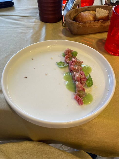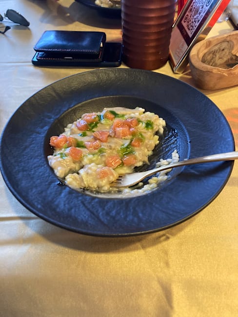 6.5/10Nice location on a large piazza where the kids could play. The wine, appetizers (tartare and salmon Caesar) and tiramisu were good. The risotto and pasta were very bland and were under whelming. We have had much better food for less money at many other places in Abruzzo.