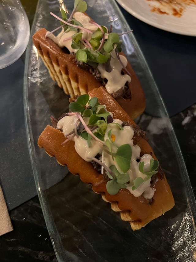 6.5/10With a system, where you book in advance and have all ordered in advance, the expectations were high. But the system with only 2 hours or less turns the experience into a rush hour. On the upside the food is really good, on the medium - the winelist is short and dominated by cheap wines. On the downside the waiters were not very attentive. We were sitting close to the door and in February the wind comes in cold. A good place for young people on the go, but for the price, the service should be better with more waiters to attend the guests.