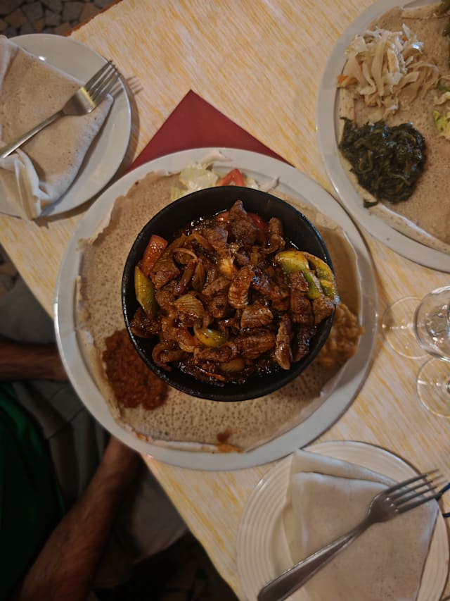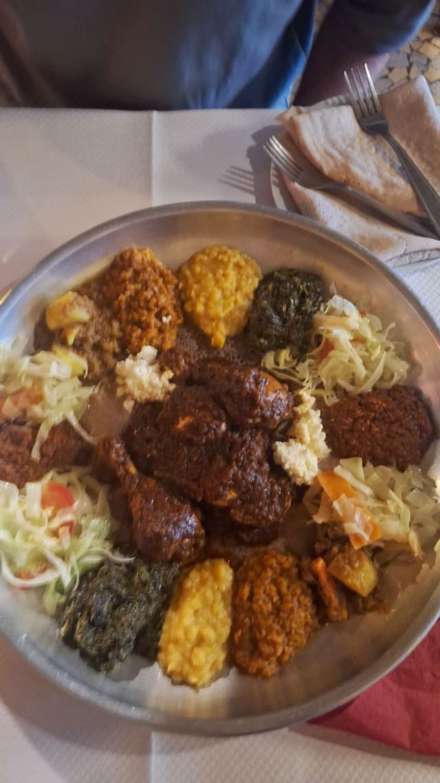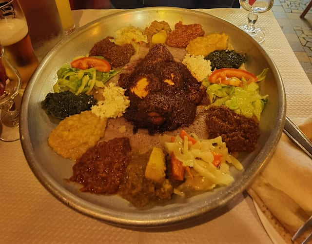 9.5/10The staff is welcoming and helpful and the atmosphere is genuine albeit the restaurant looks overall a bit messy. The food is incomparably tasty and, although a bit pricey, definitely worth it. Go for the menu to share for a real experience of Ethiopian flavors. The recommended wine (from South Africa) was acceptable. The deserts however are a mixed bag: the baklava was too soggy for my taste but the fruit salad was tasty.
