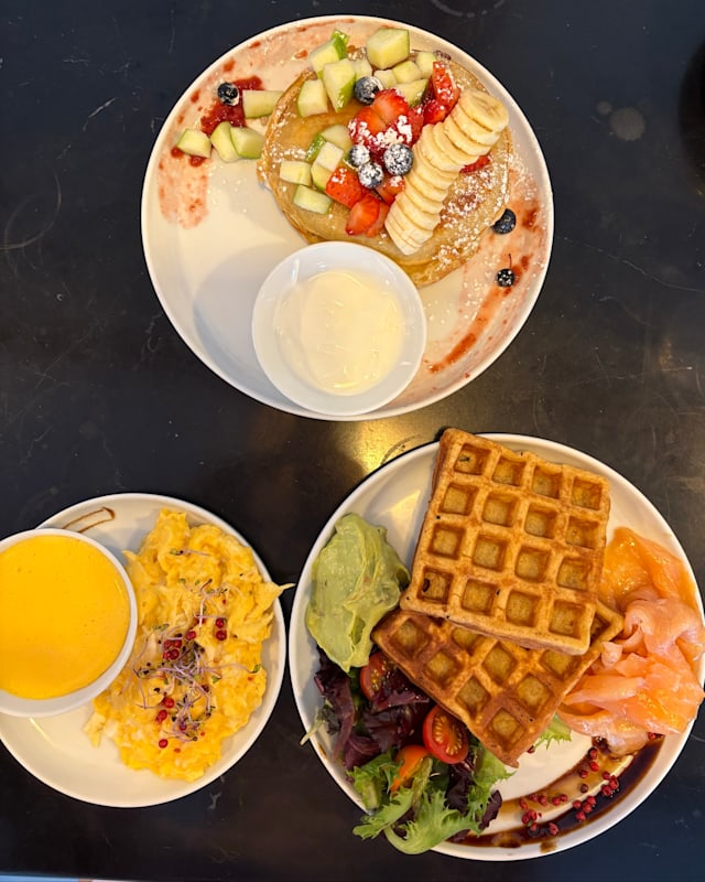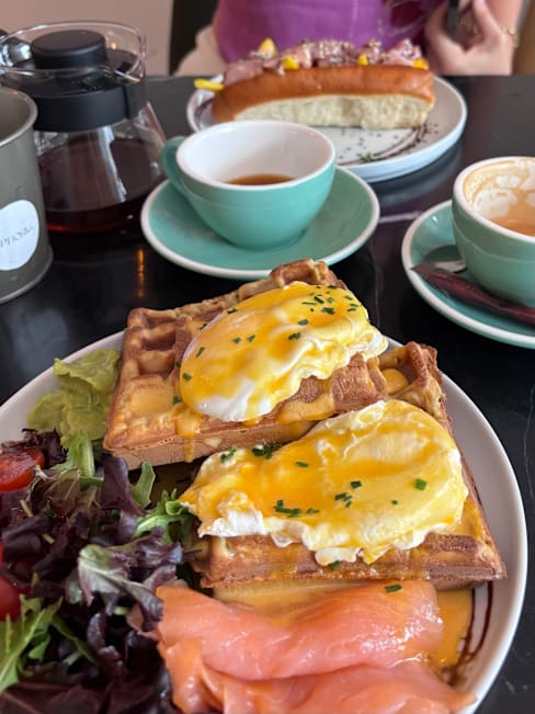 10/10Great flat white and perfect foam. Amazing V60 with Ethiopia beans. Salmon waffle and tuna hotdog were good sized portions. Soufflé was made fresh and was delicious.