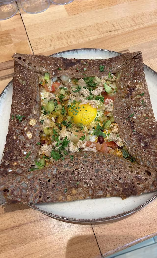 - En version galette de sarrasin avec éclats de crépe dentelle / en version crépe de froment avec éclats de sarrasin torréfiées