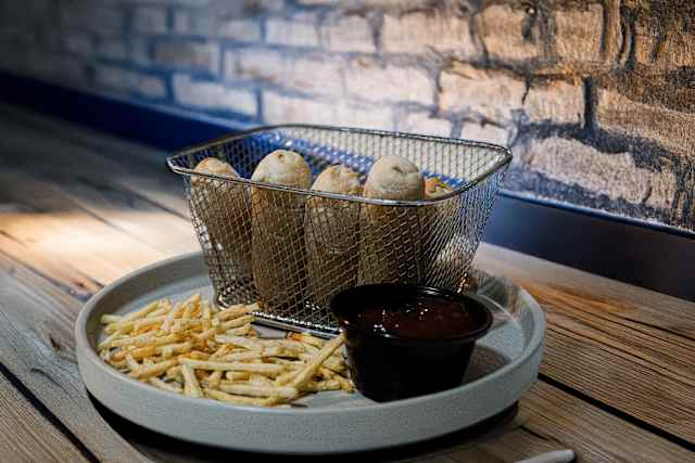 - Pan brioche, cebolla frita, carne estilo smash crujiente, queso cheddar fundido y un irresistible baño de salsa barbacoa. Acompañada de patatas. Disponible con una o dos carnes.