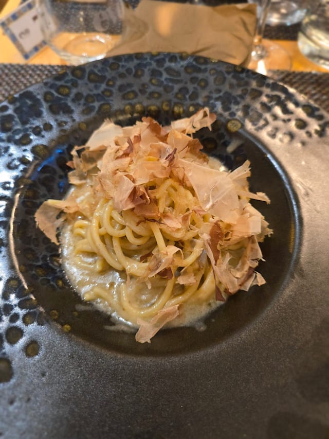 8.5/10We stopped in because it is close to where we are staying in Sora. Very pleasantly surprised. We recommend it highly. We had the ziti with guanciale and the Oro Nero. If you are a fan of black garlic as I am, then I highly recommend the Oro Nero. The sauce was silky smooth. Our server was very helpful and kind enough to speak English with us. The menu is not the typical fare and you will enjoy!