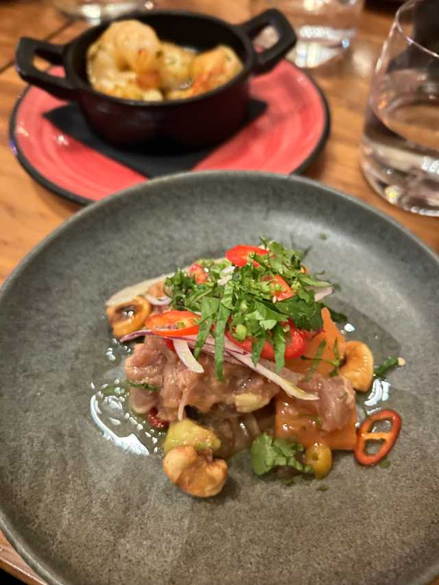 9.5/10Very good food on the warm terrace after local football match with people strolling by. Tuna tapas was excellent & the rest of foods good as well.