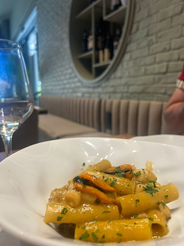 Calamarata di gragnano con filetto di scorfano fresco, pomodori confit e olio evo