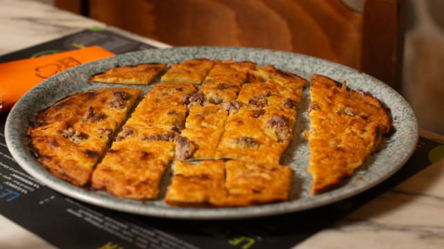 Nduja di Melicuccà, stracchino, scamorza affumicata, cipolla di tropea, gocce di pomodoro del Gargano