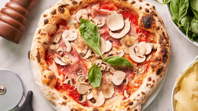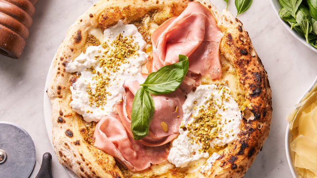 Burratta D.O.P 125g, jambon de parme I.G.P 20 mois, tomates cerise, pastèque, huile d'olive, basilic, crème de vinaigre balsamic