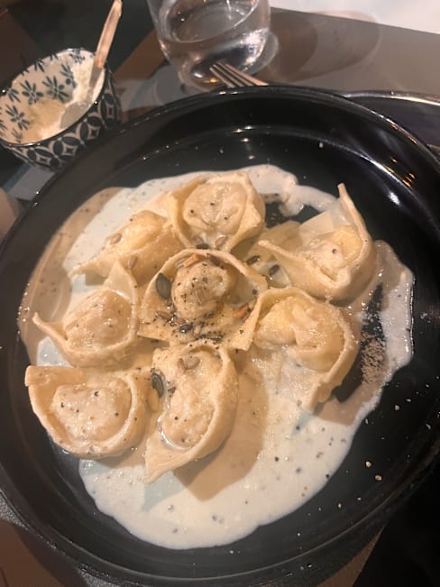 4/10Far too expensive foer what it is. We were expecting homemade fresh pasta, and all we got were "maybe" homemade pasta, but definitely not fresh (Mafaldine cherry tomatoes, ruccola and tiny burrata CHF31).... A slice of aubergine with a tiny burrata and a slice of ham...27chf as a starter?! Overall, they were not welcoming...Will definitely not go back.
