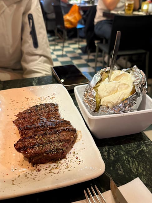 8.5/10The beef, baked potatos and pastas are great, and hence we returned the next day. Service is not that good as the kitchen seemed to have skipped my order- it took 30+ mins waiting time, and the neighbouring customers who made their order after ours had almost finished their meal by the time our food came. But at least the waiter offered 2 free cups of coke as a compensation. Requested ketchup but it never came. Locused in the red light area in Amsterdam and it is not too convenient-- took 10+ mins to walk from and to the canal area or the centraal area.