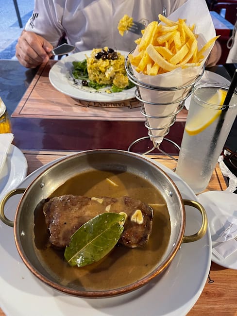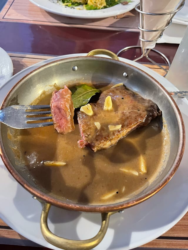 10/10I ate a steak with fries, hands down the best steak I’ve ever had. The meat was melting in my mouth. We also got wine on the house