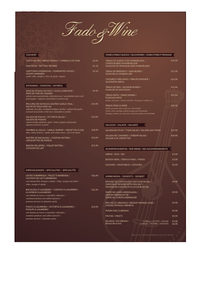 10/10Really delicious Portuguese food and wine! We expected fado music due to the name of the restaurant which they started playing on speaker after we asked for it. It’s a really nice smalls and cozy restaurant.