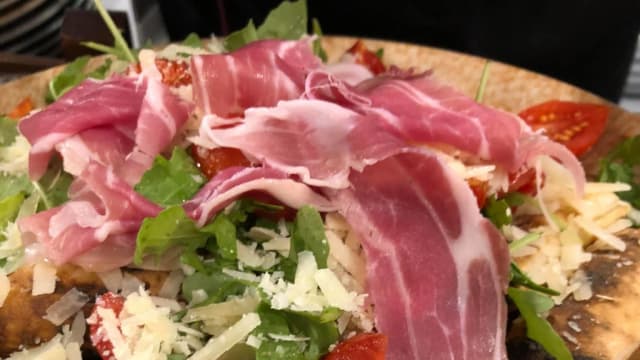 Pomodoro datterino, rucola, crudo, mozzarella bufala dop, olio evo