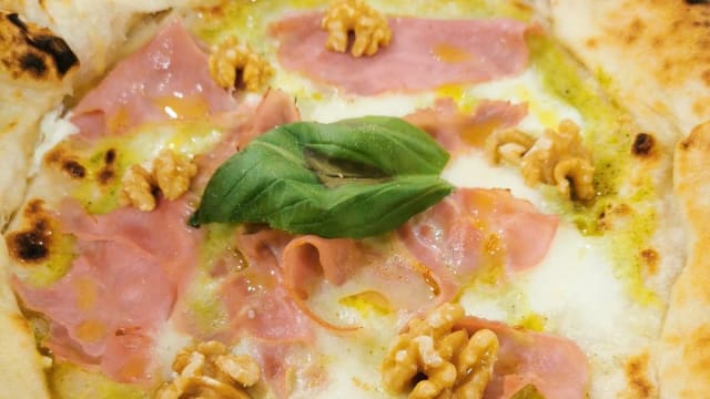 Fiordilatte, radicchio, gorgonzola, speck, noci, basilico, olio evo
