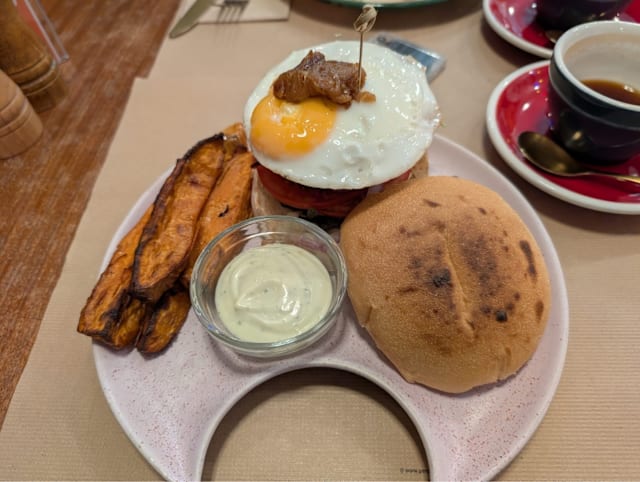 10/10Cozy atmosphere with a touch of retro vibes, delicious food with super fresh and tasty ingredients, good vintage music, friendly stuff; it has all to make sure you will have a great experience. I loved the projection of the old advertisements and the cassettes on the tables with the QR code of the menu on them, very creative and cute. We tried beyond burger and egg benedict supreme, they were both incredible 😋 I should also add that the menu has great options for vegetarians and vegans.