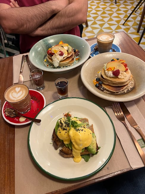 2.5/10The food quality was absolutely terrible. Trust me, we had never eaten such horrible egg Benedict and pancakes before!! They really made our day terrible. We tried 2 different pancakes and they were all burnt, and didn’t have much flavour either!! The chocolate one was even worse than the other that has syrup. And let me not tell you about the egg Benedict that was the WORST egg Benedict of all time with the worst bread…! The service was disappointing either. When we arrived and we showed them the reservation, a guy by the door told us in a very very rude manner you’re late so we thought we cannot even enter!!! (We were only 15 mins late!!) Also they brought us the food so late that made us disappointed to have it at all!! Overall we won’t recommend it to anyone and we will never come back despite living only 5 mins away by walk.