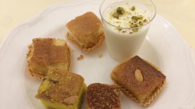 Baklawa (4 pièces): pâtisseries fourrées aux pignons, amandes et pistaches