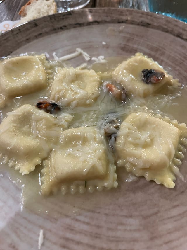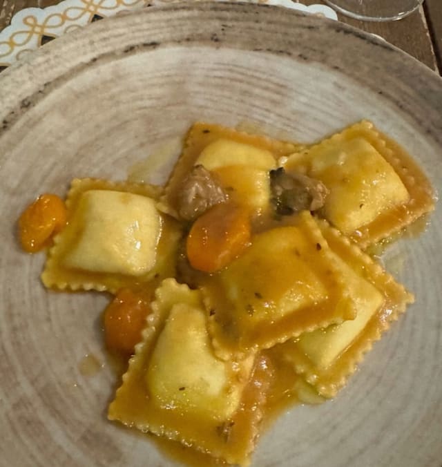 Tortello ripieno di mortadella burro salato e granella di pistacchi