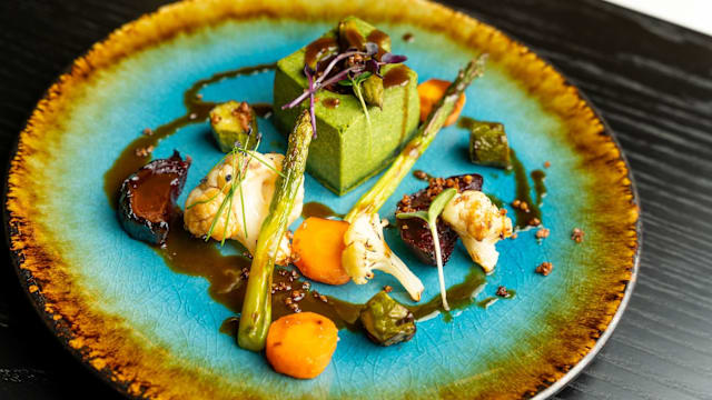 Il vegetariano (flan di asparagi, rosa di carota e carciofo)