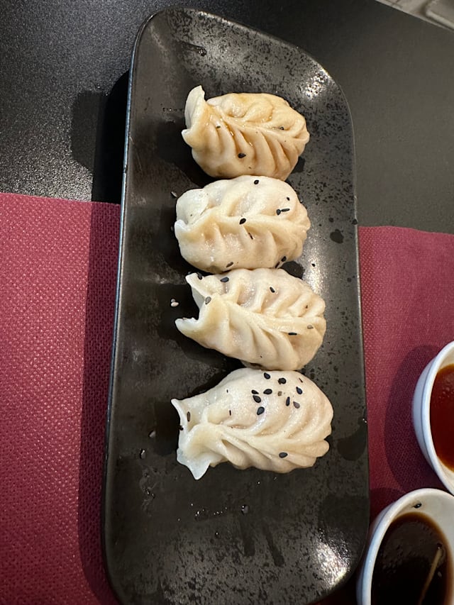 7/10Had a fantastic meal! The dumplings are amazing and homemade. Would have loved a little more guidance from the waiter on what to order to give us a varied taste profile between the different kinds. Beef dish was ordered was just ok...just tiny strips of beef and too many onions. Eggplant was also very good, but note that it isn't veggie only...there is some ground meat. Still, very tasty and not heavy as eggplant often is. Mochi was a delightful finish.