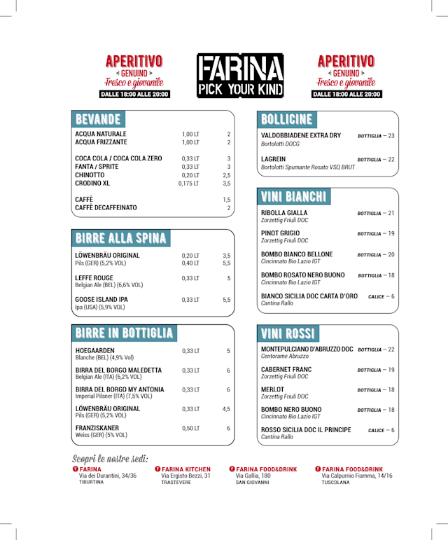 COSA ORDINARE - Il ristorante Farina è situato nella zona est della città di Roma, non distante dalla stazione di Roma Tiburtina. Il menù del locale dispone di una selezione di piatti molto sfiziosi e gustosi, dove le specialità della casa sono i pagnottelli e la pizza. Davvero ottima anche la birra...