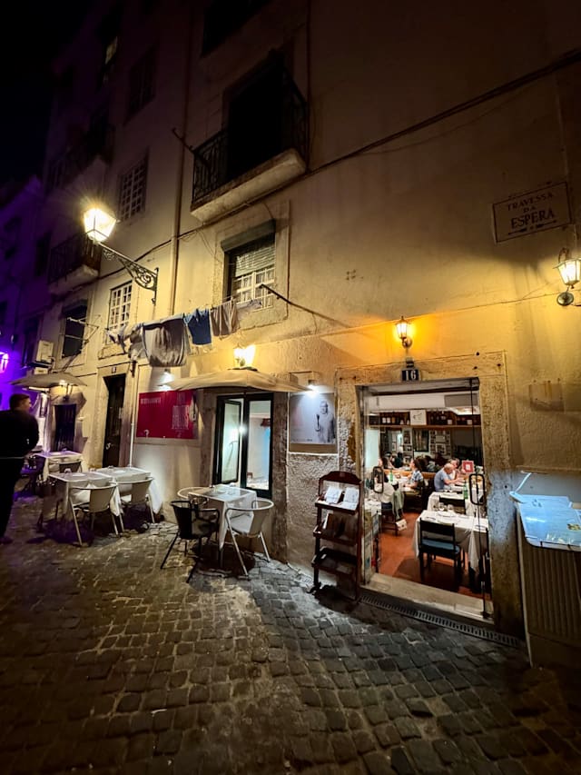 10/10A very welcoming place where we were treated to a lovely meal. The sardines were delicious and so were the veal and fish. The pork dish was tasty but could have had more sauce, it was so tasty! Topped off with a delicate and soft crème brulee and a dark and very rich port — delicious! We were a loud and happy foursome reuniting after a long time and it was the perfect place to rendezvous in the swirling fun of the Bairro Alto.