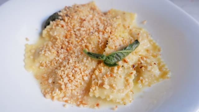 Pasta ripiena di carne di fassone.Sugo in base alla disponibilità.