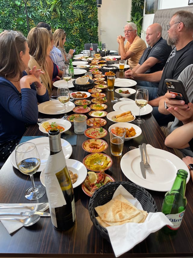 8.5/10Found Fatoush via TripAdvisor, which is a tool we use very often in cities where we don’t know the restaurant arena. Booking via the Fork and within 5 min we received the confirmation that we were welcome with 6 people. Nice restaurant, with good Libanese food and we decided to order 8 Meza and 3 main dishes with 8 people. After this 3 deserts and we had a nice meal. Very kind people were serving us.