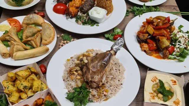 2 koude mezza’s met salade, 2 warme mezza’s, 2 hoofdgerechten