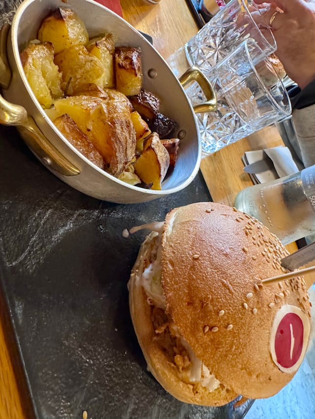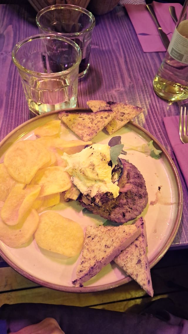 8/10Burger was delicious but the chips were not to my taste, more like crisps than French fries style. Fried Taleggio was really good