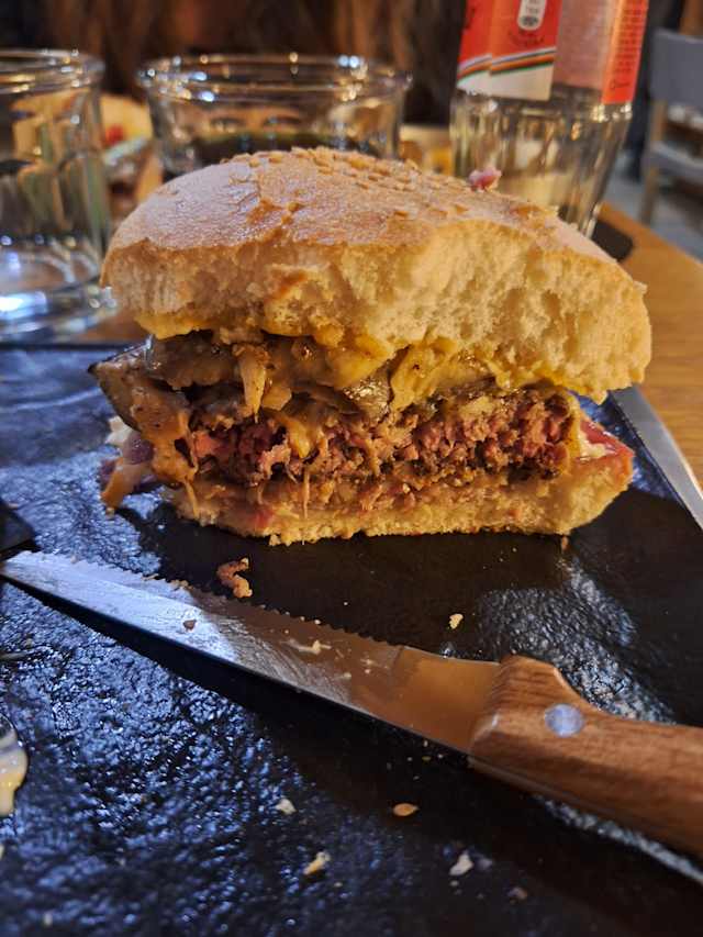 9/10Very good hamburgers, both fries and baked potatoes were great. Desserts small but good. Price is quite expensive, but similar to other places in the area (and hamburgers do have interesting ingredients, not just the usual cheese and bacon). There's no tablecloth: they bring you fork, knife and sauces and that's it. Service was nice.