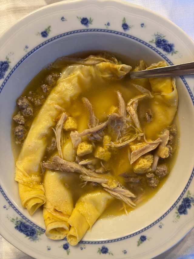 Ricetta tipica abruzzese, scrippelle in brodo di carne. Secondo disponibilità.