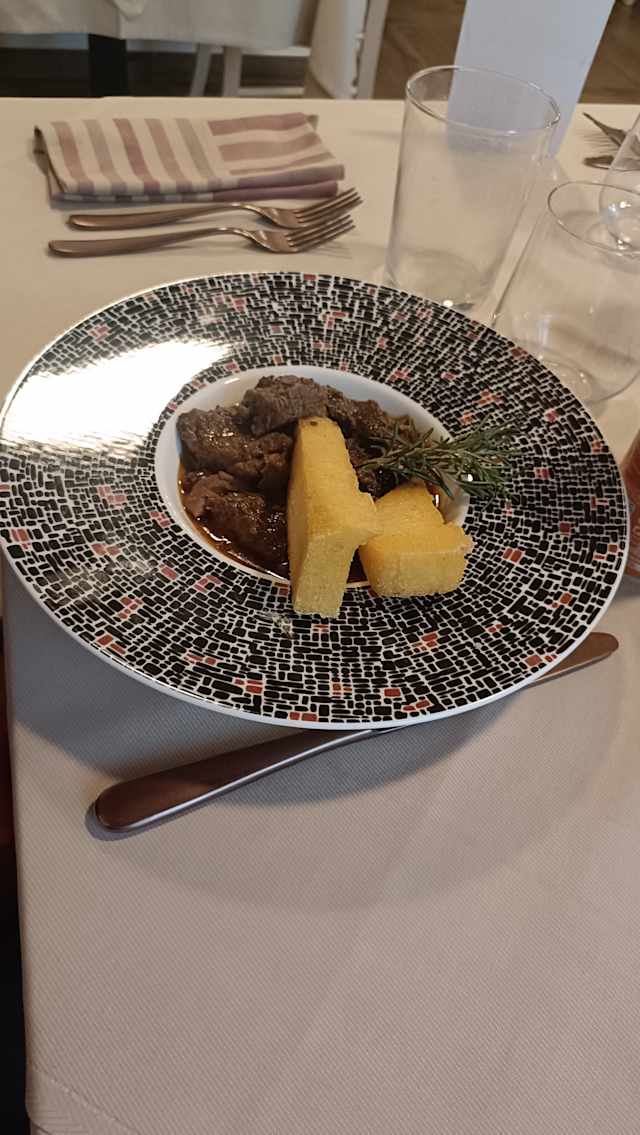 - Cinghiale in umido con olive su crostone di polenta fritta