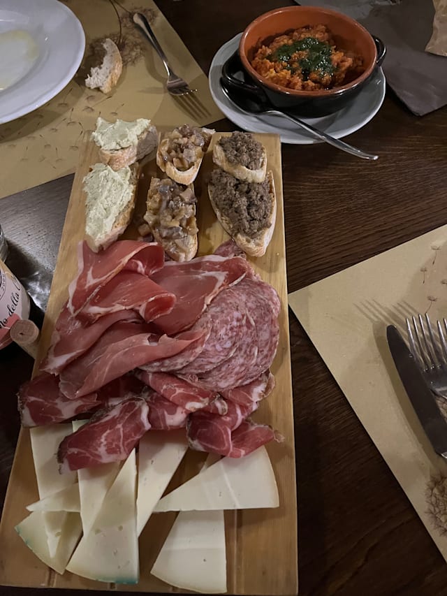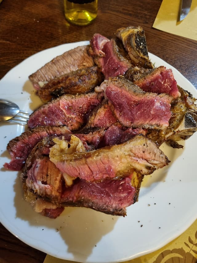 9.5/10This was the perfect ‘last night in Tuscany’ experience for our family of 12 with the nicest of hosts. The hosts very graciously explained their menu, taking time for the translations and helping us with our order. We were fascinated by the chunk of meat that was to be grilled and the chef let us watch him grill it to perfection. The best part was that it was literally a farm to table experience and everything including the salt they use, is locally or regionally sourced. It was almost like being invited to this big Italian family dinner at their home and they even gave us a bottle of their own house wine to take home. How sweet is that? All the food upto desserts were exquisite and the perfect sweet ending. We really thank chef Sara, Daniella and all the staff for their wonderful service and especially the person who really explained to us about the steak and the cook (we unfortunately didn’t catch his name in all of the conversations!). Highly recommended for families and those yearning for a real Tuscan experience. It’s also located in a quaint setting that adds to the charm of the place.