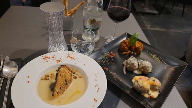 - La nostra polpetta al ragù accompagnata da una generosa crema al formaggio