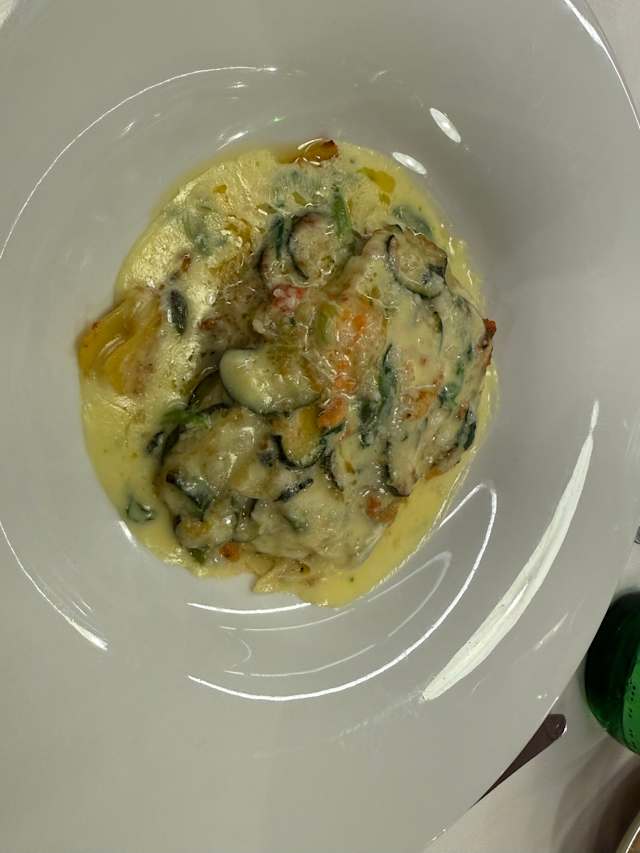 - Tagliolini al nero di seppia con la piovra e ravioloni ai crostacei